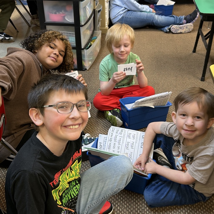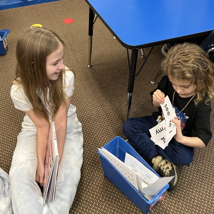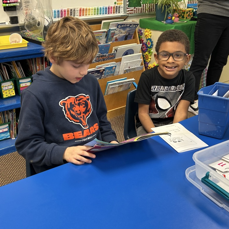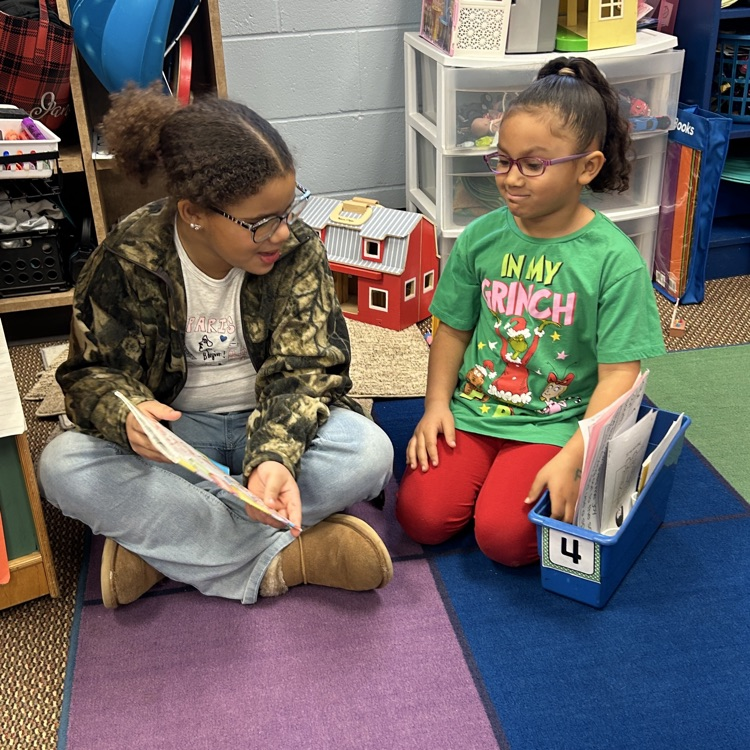 Mr. Holmes' class is practicing reading to a buddy in preparation for World Read Aloud Day! Fourth graders will be reading to the kindergarten classes on Wednesday.